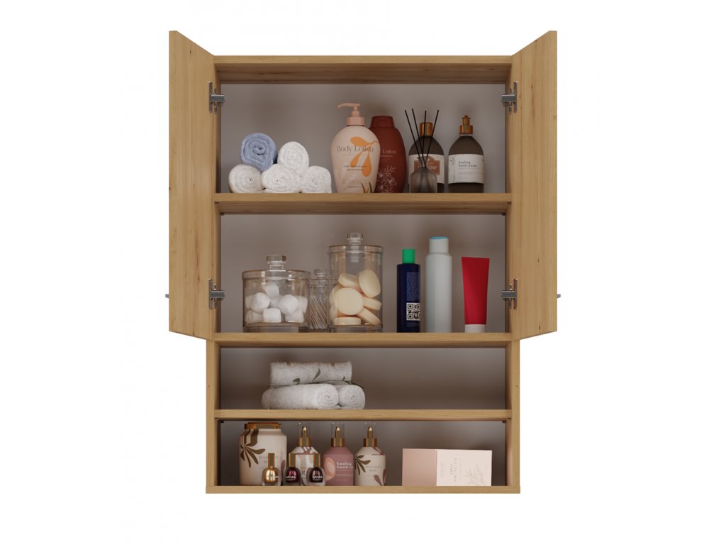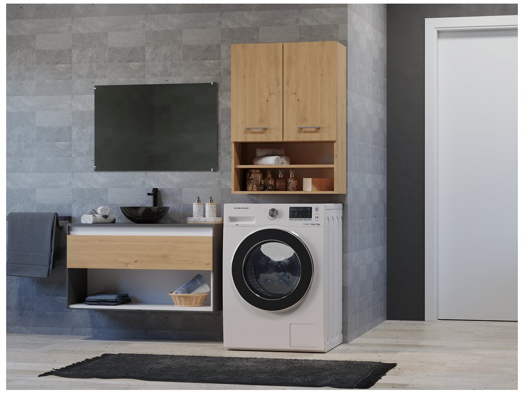 Praktická závěsná skříňka nad pračku POLA MINI DK je ideálním doplňkem pro malé koupelny. Skříňka má 2 otevřené police a 2 police skryté za dvířky, které nabízí dostatek úložného prostoru, kde můžete uložit kosmetiku, ručníky a další doplňky potřebné v koupelně. Díky tomu už nebudete mít starosti s nepořádkem ve vaší koupelně. Vyrobeno z kvalitní LTD desky, která má tloušťku 16 mm a je nenáročná na údržbu. Dodáváme v demontu. V naší další nabídce naleznete tuto skříňku v dalších variantách.