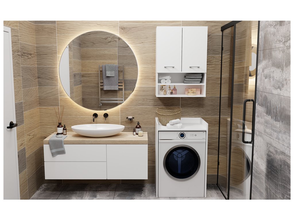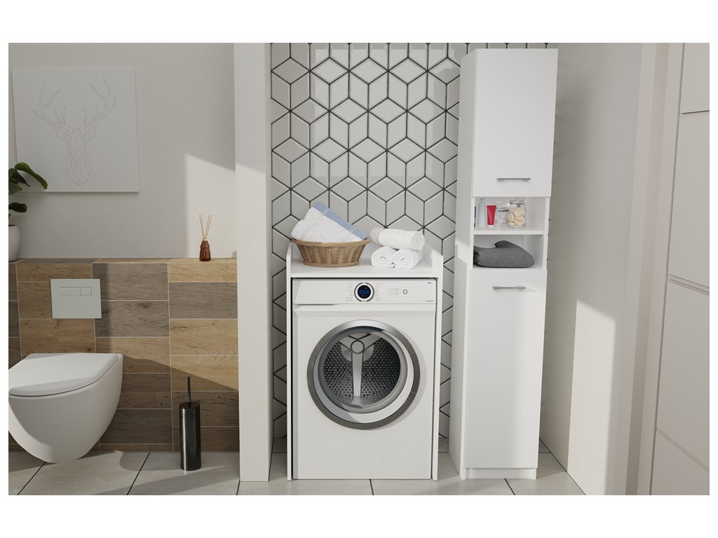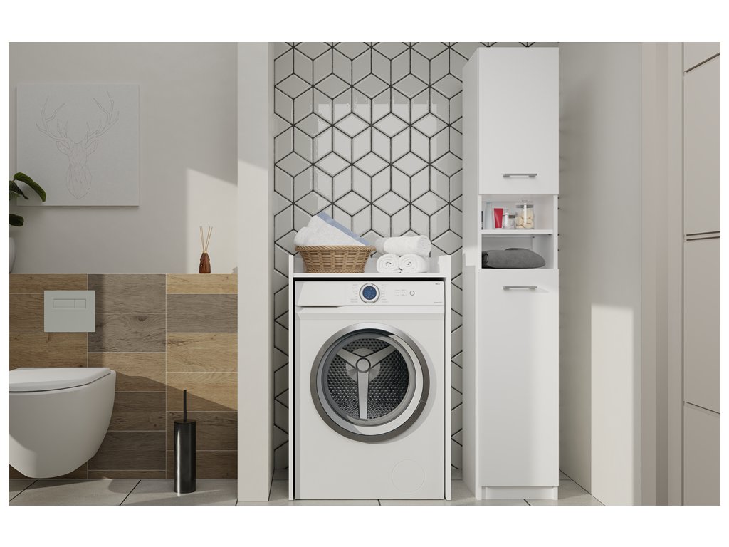 šířka: 64 cm | výška: 97,5 cm | hloubka: 50 cm Praktická skříňka nad pračku POLA NP je ideálním doplňkem pro malé koupelny.Hlavní výhody: Praktická stolní deska Elegantní...