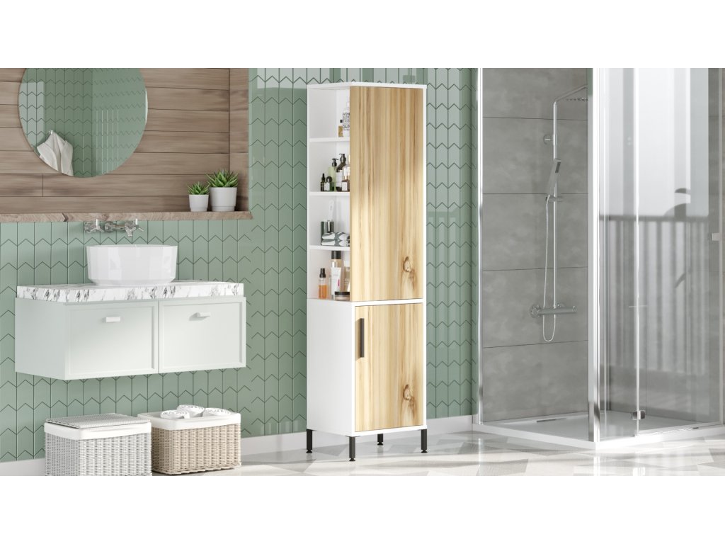 S připomínkou přírodního dubu a čistoty bílé, skříň se stane nejen funkčním, ale také výrazným estetickým prvkem vaší koupelny. Optimalizované poličky uvnitř i z boku skříňky a dvoudveřový design zajistí, že vše potřebné bude mít své místo. Dělejte kompromisy v barvách, ne v kvalitě!