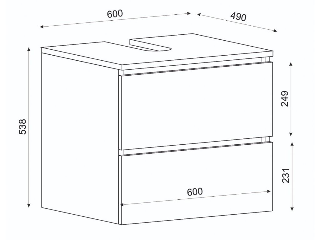 Závěsná skříňka pod umyvadlo se dvěma výklopnými dvířky je vyrobena z kvalitního lamina o tl.18 mm hraněné PVC páskou, odolného proti poškrábání v barvě matná bílá. Dodáváme v demontovaném stavu.Doplňkové parametry