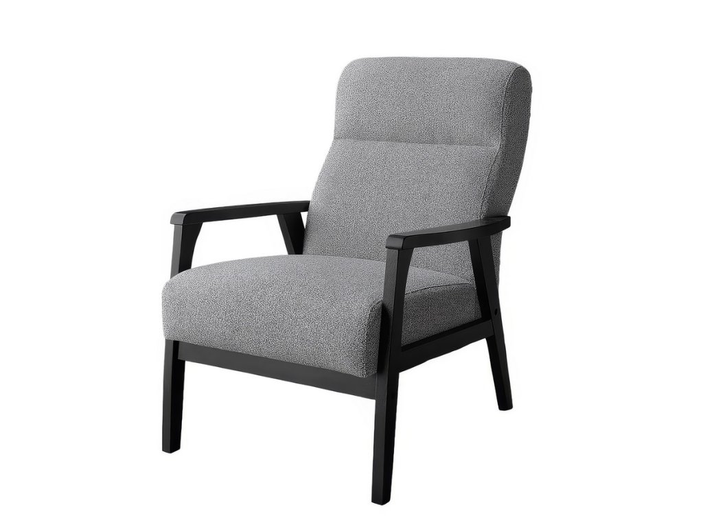 Elegantní celočalouněné křeslo v retro stylu bude ozdobou každého interiéru. Nožky křesla jsou ze dřeva v barvě wenge, čalounění je z látky v barvě šedá látka JS2155-23. Pohodlí a elegance v kvalitním provedení ve Vašem obýváku, dětském pokoji či kanceláři. Pohodlné sezení zaručuje v sedáku vlnovcová pružina v kombinaci s PUR pěnou ( T-24 ), opěrná část PUR pěna ( T-26 ).