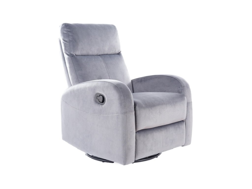 Rozkládací čalouněné křeslo s houpací funkcí. Jednoduchým mechanickým pohybem z křesla uděláte pohodlnou pohovku s opěrkou pod nohy. Čalounění je z látky velvet v šedé barvě (Bluvel14). Celková hloubka křesla je 80 cm, po rozložení 160 cm. Hloubka sedu je 55 cm, výška sedu 51 cm, šířka sedu 50 cm. Pohodlí a elegance v kvalitním provedení ve Vašem obýváku, dětském pokoji či kanceláři. Nosnost max. 120 kg.