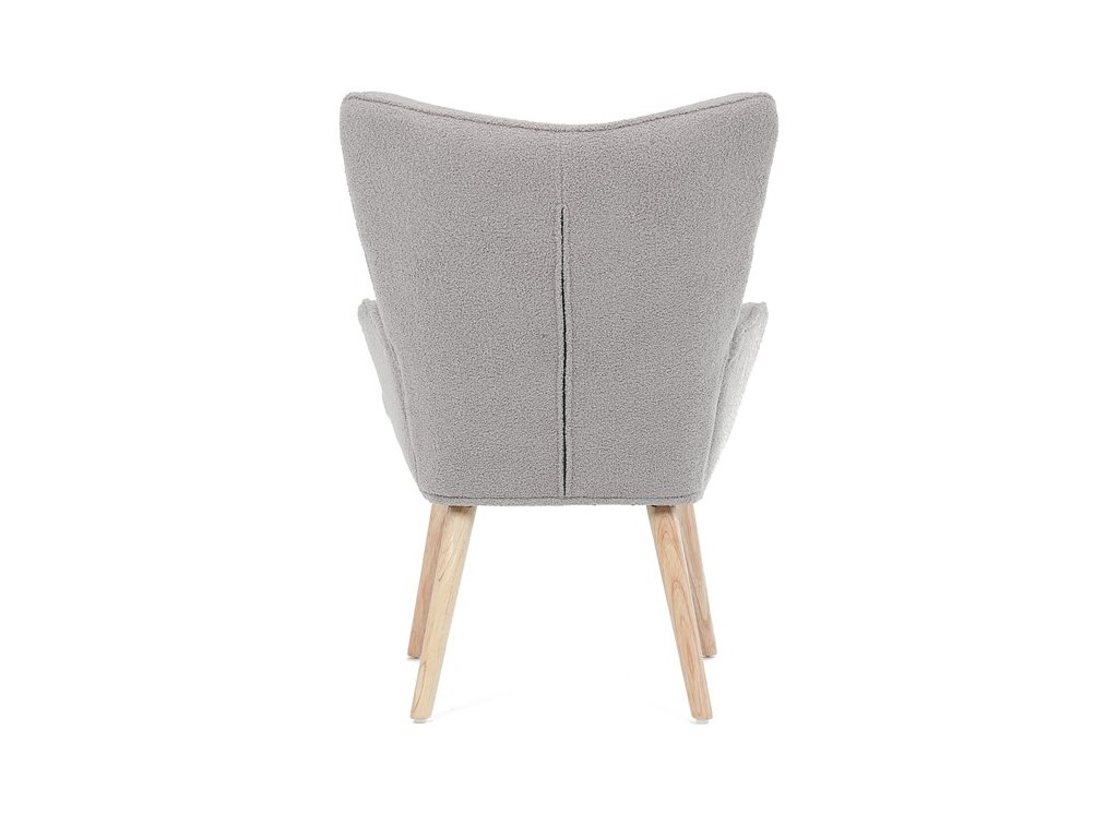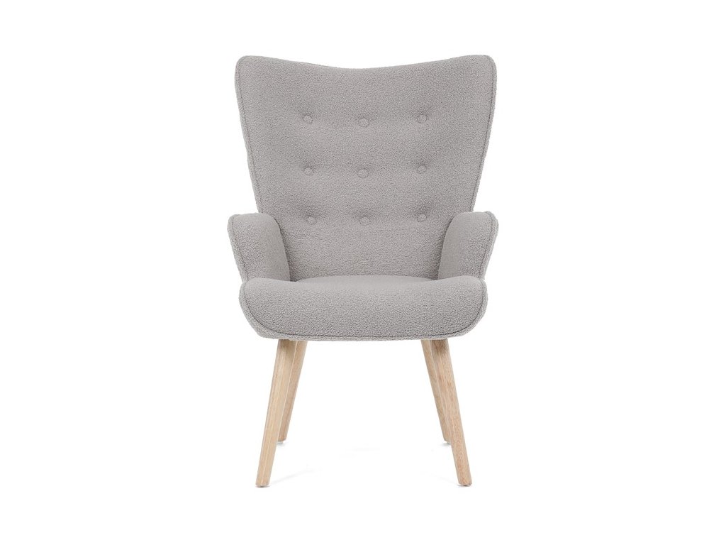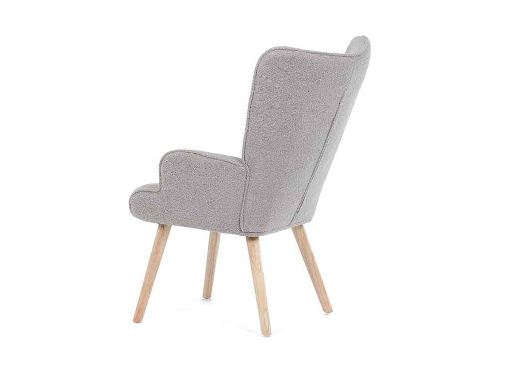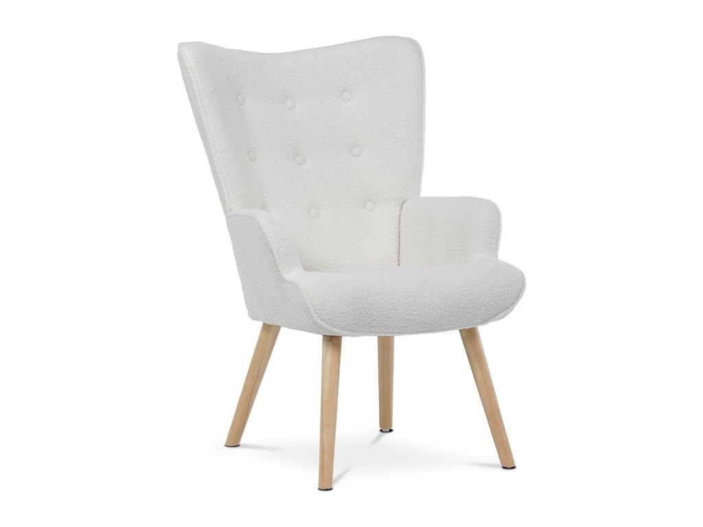Zkrášlete svůj obývací pokoj nebo pracovnu tímto křeslem, které v sobě kombinuje bílou barvu a přírodní masivní nohy. Potah křesla je vyroben z látky bouclé s jemným povrchem. Pěnová výplň křesla Vám poskytne opravdový komfort.