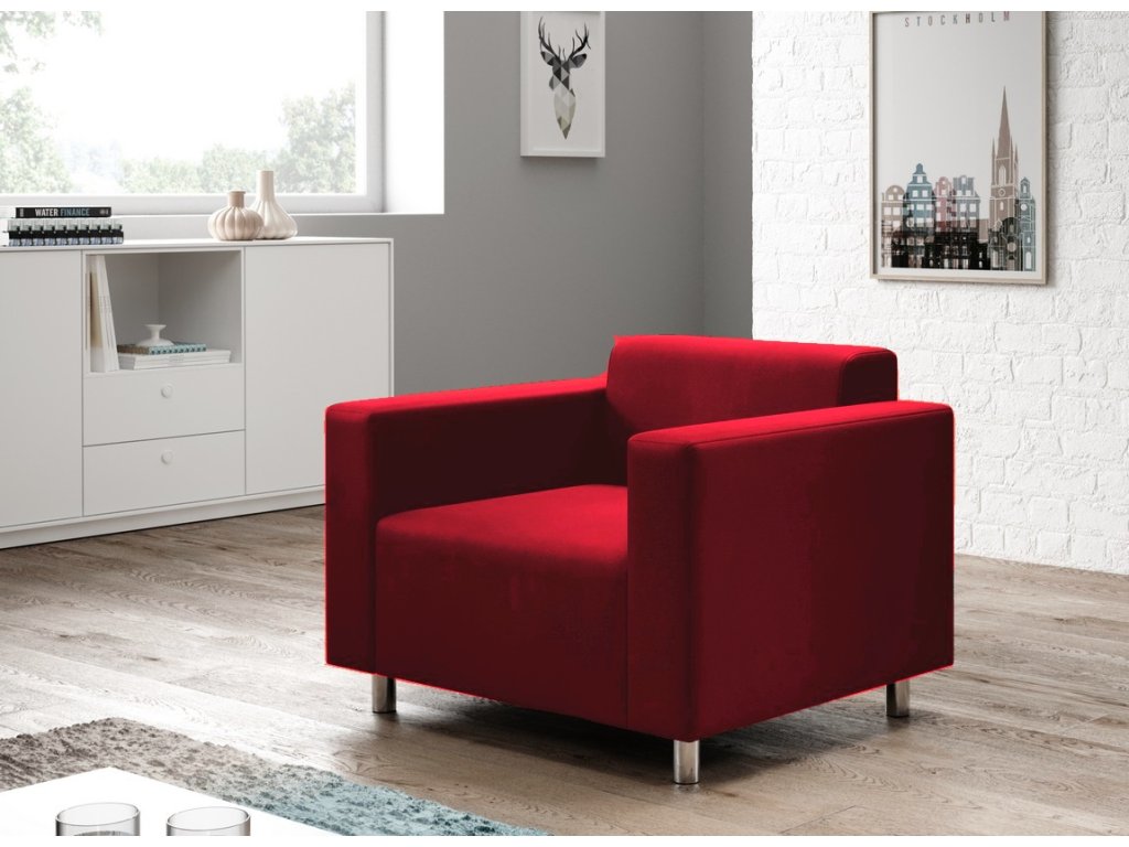 Praktické stylové křeslo vhodné do menších prostorů. Pohodlné sezení zaručují vlnovcové pružiny spolu s PUR pěnou. Výška sedáku je 40 cm, hloubka sedu je 54 cm. Nosnost křesla je 80 kg. Barevné provedení - Cayene 1114 (červená ekokůže).