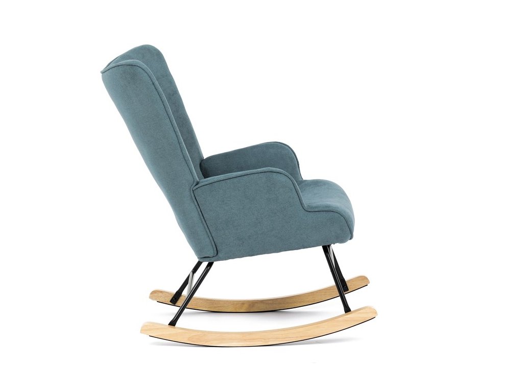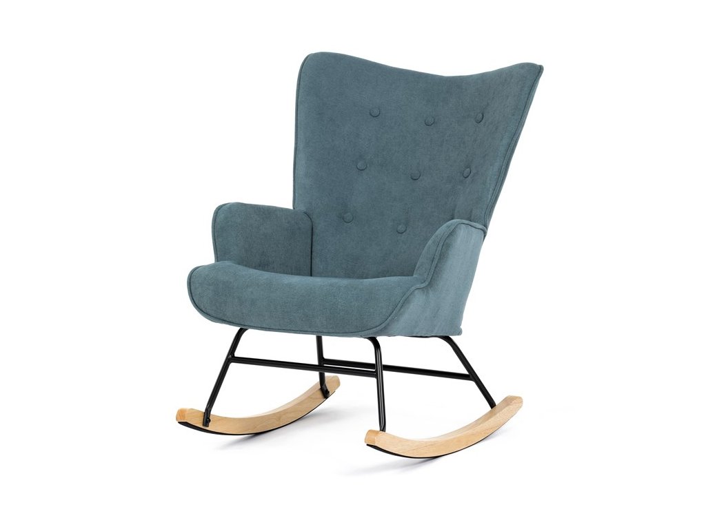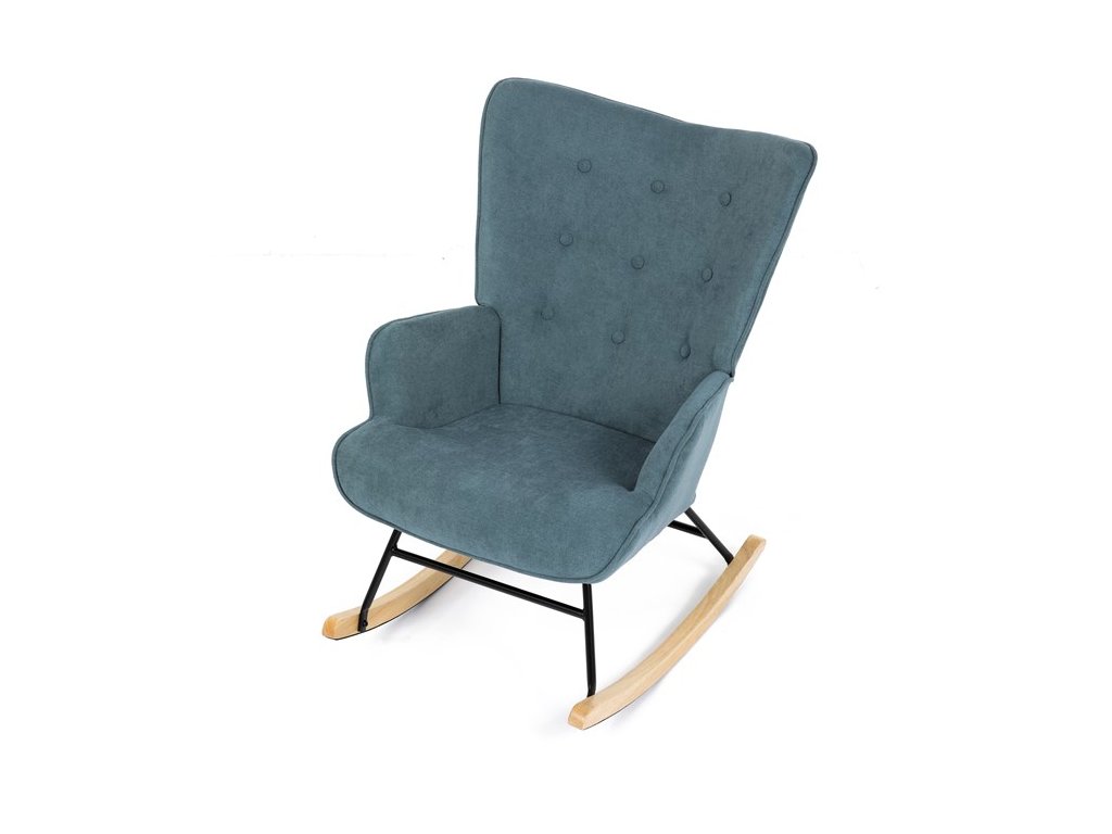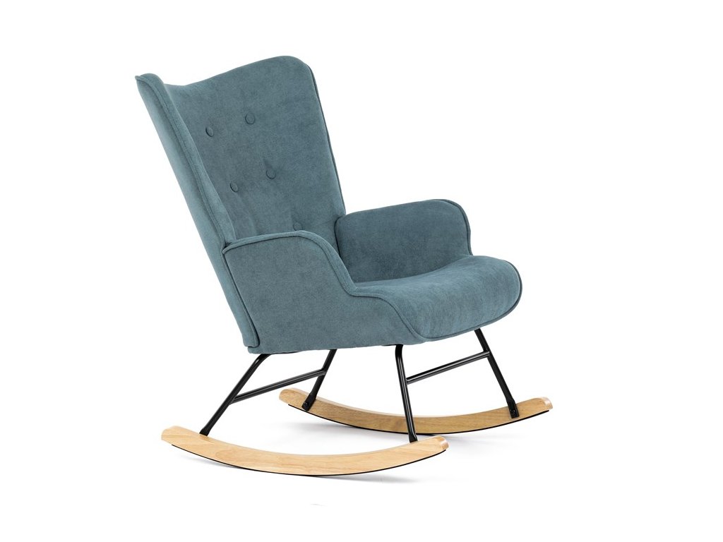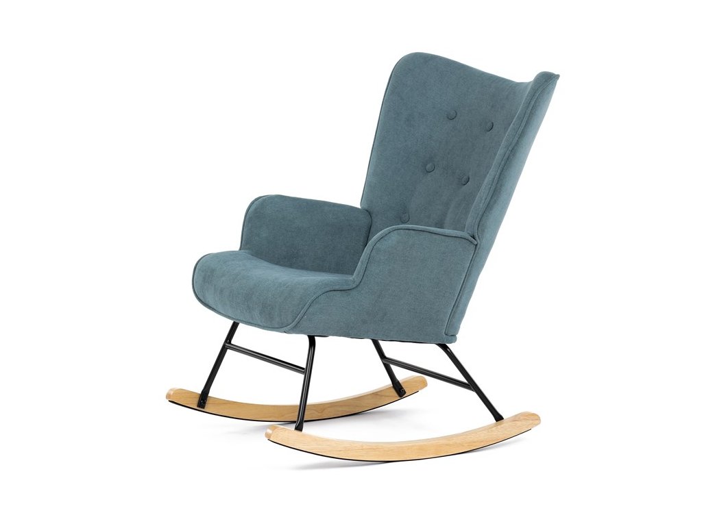 Luxusní houpací křeslo v moderním designu přináší do vašeho interiéru harmonii a styl. Hladká látka v elegantní modré barvě dokonale ladí s přírodními nohami z masivu, čímž vytváří sofistikovaný vzhled. Pohupová podnož zajišťuje stabilitu a pohodlí při každodenním užívání. Ozdobné knoflíky na opěradle přidávají jemný dekorační prvek, který ocení každý milovník detailů. Křeslo od značky Autronic je ideální volbou pro obchody i soukromé zákazníky hledající kvalitní nábytek s dávkou elegance.