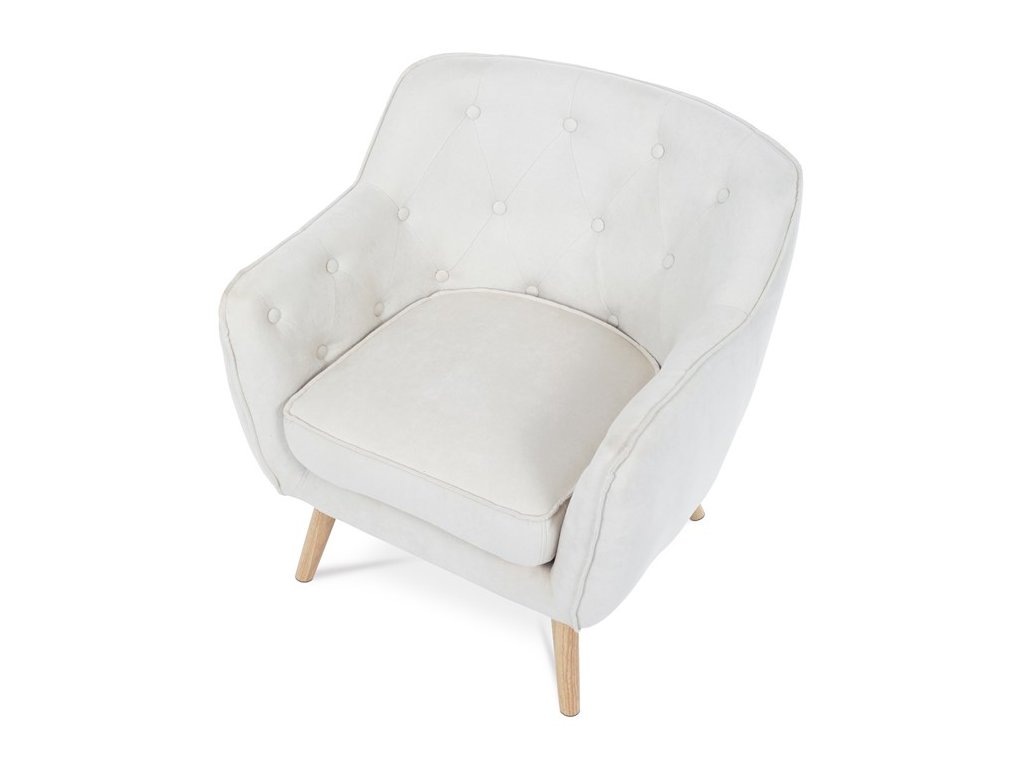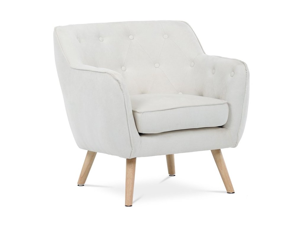 Relaxační křeslo s vysokým podsedákem je dokonalým doplňkem Vašeho obývacího pokoje nebo ložnice. Křeslo je vyrobeno z bílé hladké látky, která dodává tomuto kousku nábytku vzdušnost a eleganci. Jeho přírodní dřevěné nohy přidávají skandinávský nádech a příjemnou atmosféru do Vašeho interiéru.