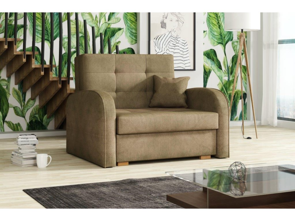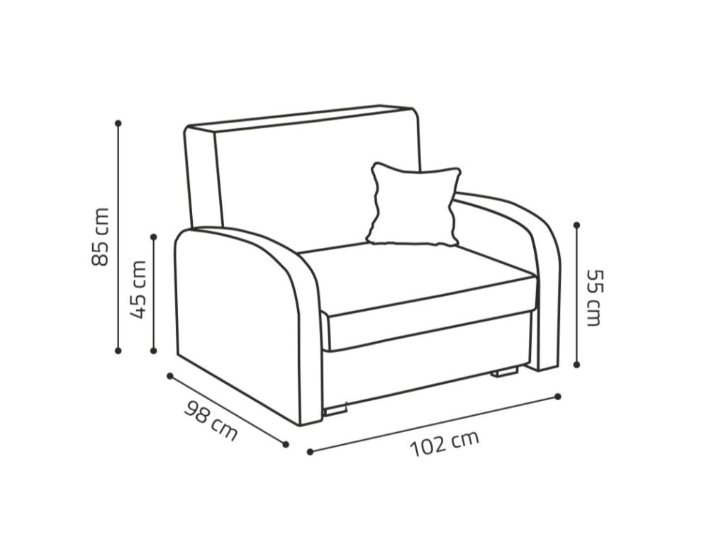 Sedák je vyplněn kombinací vlnitých pružin a PUR pěny, což zajišťuje komfortní sezení i ležení. Součástí je také praktický úložný prostor, ideální pro uložení lůžkovin nebo dalších věcí. V ceně křesla je 1 dekorační polštář. Ostatní vyobrazené dekorace nejsou v ceně.