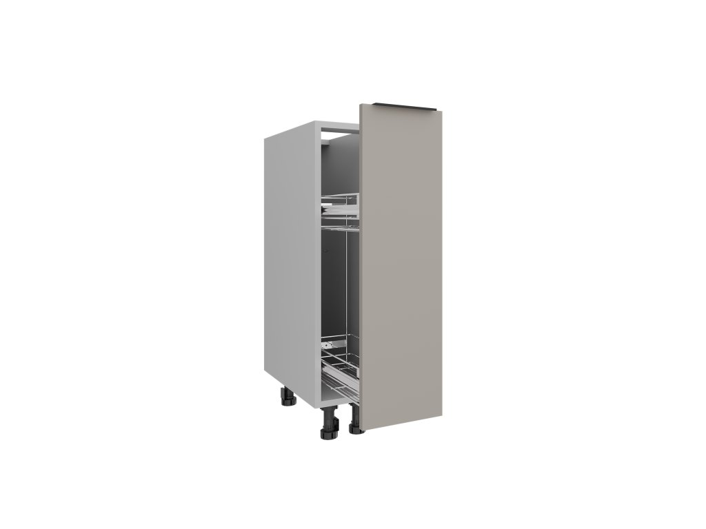 Dolní cargo skříňka KRAFTY je praktickým řešením pro přehledné uložení potravin, lahví nebo kuchyňských doplňků. Díky drátěnému výsuvnému koši máte vždy okamžitý přístup ke všemu uloženému uvnitř a snadno využijete i užší prostor v kuchyňské lince. Korpus skříňky je vyrobený z pevné 16mm desky a dvířka jsou opatřena odolnou ABS hranou. Moderní černý kovový úchyt sjednocuje vzhled celé kolekce KRAFTY a podtrhuje její současný styl. Spodní skříňky jsou vybavené plastovými nožičkami o výšce 10 cm. Cargo skříňku lze kombinovat s dalšími moduly KRAFTY a využít ji jako praktický doplněk v jakékoli části kuchyňské sestavy. Sokl není součástí balení. Dodáváme v demontu.