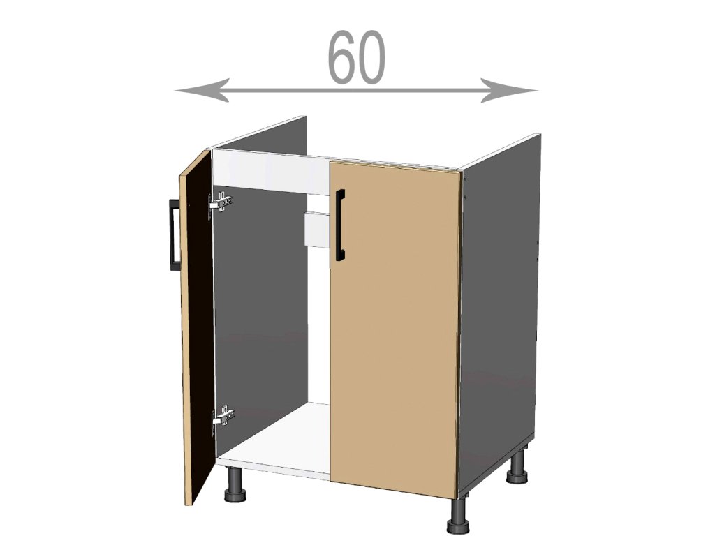 Dolní dřezová skříňka KRAFTY je konstrukčně určená pro umístění kuchyňského dřezu a ukrytí vodoinstalace. Vnitřní prostor neobsahuje polici a tím je přizpůsoben sifonu a rozvodům, takže pod dřezem získáte přehledné a praktické místo například na čisticí prostředky nebo odpadkový koš. Korpus skříňky je vyrobený z pevné 16mm desky, která zajišťuje stabilní základ pro dřez. Dvířka mají odolnou ABS hranu a jsou doplněna moderním černým kovovým úchytem charakteristickým pro kolekci KRAFTY. Spodní skříňky jsou vybavené plastovými nožičkami o výšce 10 cm. Dřezovou skříňku jednoduše zkombinujete s ostatními dolními i horními moduly KRAFTY a vytvoříte si kuchyň přesně podle svých potřeb. Sokl není součástí balení. Dodáváme v demontu.