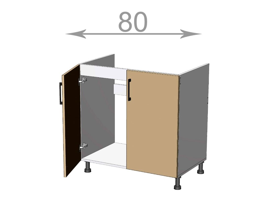 Dolní dřezová skříňka KRAFTY je konstrukčně určená pro umístění kuchyňského dřezu a ukrytí vodoinstalace. Vnitřní prostor neobsahuje polici a tím je přizpůsoben sifonu a rozvodům, takže pod dřezem získáte přehledné a praktické místo například na čisticí prostředky nebo odpadkový koš. Korpus skříňky je vyrobený z pevné 16mm desky, která zajišťuje stabilní základ pro dřez. Dvířka mají odolnou ABS hranu a jsou doplněna moderním černým kovovým úchytem charakteristickým pro kolekci KRAFTY. Spodní skříňky jsou vybavené plastovými nožičkami o výšce 10 cm. Dřezovou skříňku jednoduše zkombinujete s ostatními dolními i horními moduly KRAFTY a vytvoříte si kuchyň přesně podle svých potřeb. Sokl není součástí balení. Dodáváme v demontu.