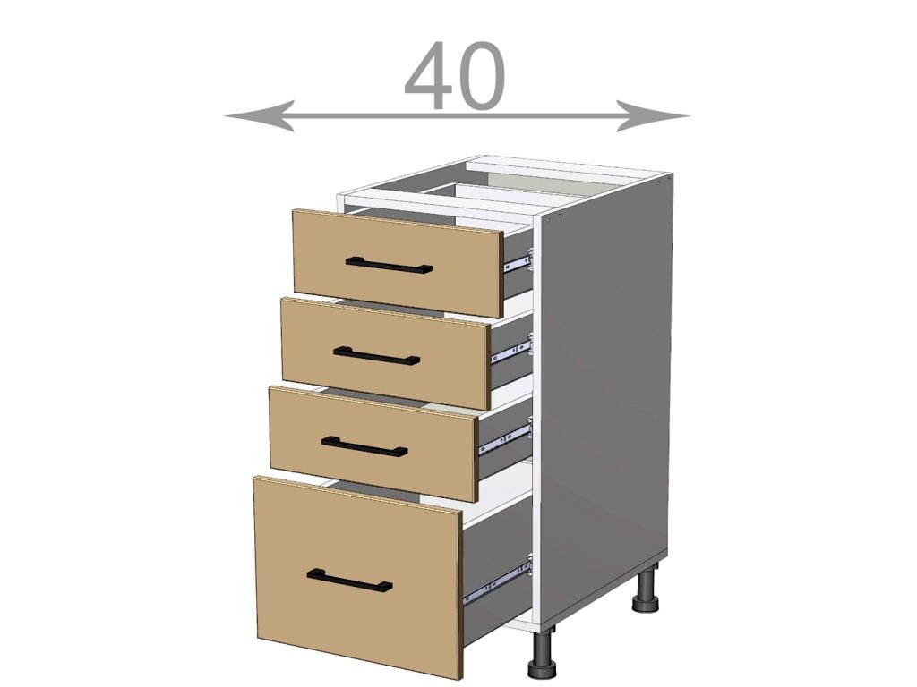 Dolní zásuvková skříňka KRAFTY nabízí přehledné uložení kuchyňských potřeb, příborů a náčiní. Kombinace více zásuvek umožňuje logické rozdělení prostoru, takže máte vše rychle po ruce a zároveň úhledně uklizené. Korpus skříňky je vyrobený z pevné 16mm desky a čela zásuvek mají odolnou ABS hranu, která chrání před nárazy a každodenním opotřebením. Moderní černé kovové úchyty sjednocují vzhled celé kuchyně KRAFTY a podtrhují její moderní charakter. Spodní skříňky jsou vybavené plastovými nožičkami o výšce 10 cm. Zásuvkovou skříňku lze snadno kombinovat s ostatními dolními, horními i vysokými moduly kolekce KRAFTY a vytvořit tak funkční a esteticky sladěnou kuchyň. Sokl není součástí balení. Dodáváme v demontu.