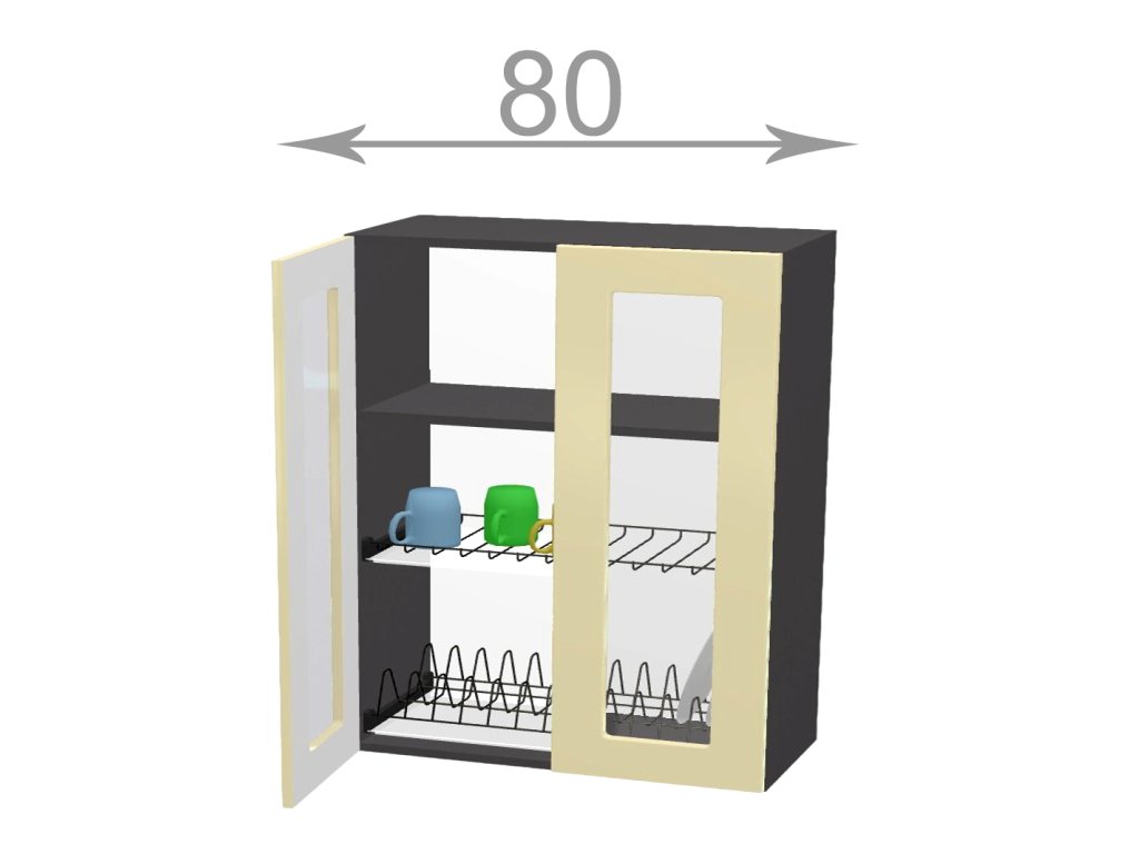 KRAFTY – horní vysoká vitrína s odkapávačem 80 cm, korpus dub Sonoma, dvířka grafit
