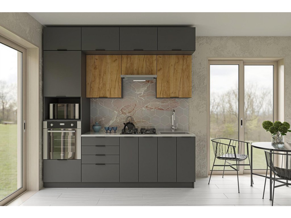 Kuchyňská linka 240 DENNY grafit/dub craft
