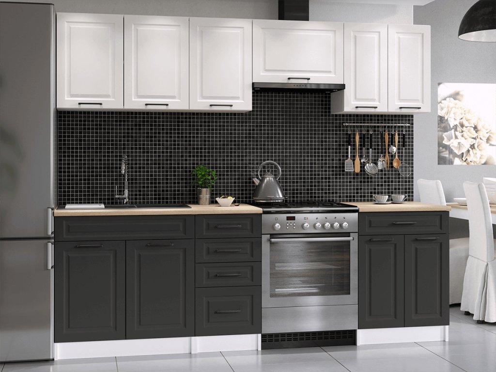 šířka: 240 cm | hloubka: 60 cm Kuchyňská linka v elegantním a praktickém provedení s velkou spoustou úložného prostoru. Materiál LTD, korpus je v barvě grafit, dvířka jsou v...