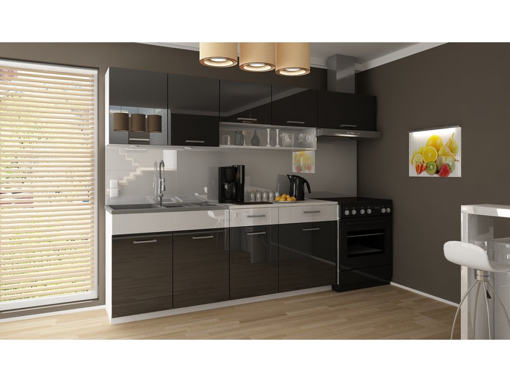 Kuchyňská linka Samara 240/180 černý lesk/bílý pás