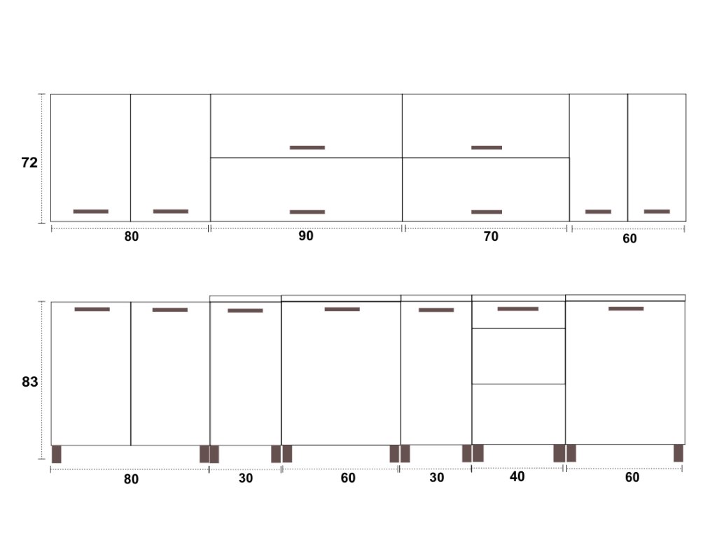 šířka: 260 cm | hloubka: 60 cm Moderní a levná kuchyně. Tato kuchyně je navržena tak, že skříňky se dají poskládat v libovolném pořadí, popřípadě další doobjednat. To vám umožní...
