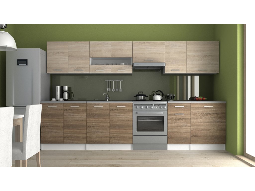 šířka: 300 cm | hloubka: 60 cm Tato moderní kuchyně kombinuje praktičnost a jednoduchý design. Skříňky se dají poskládat v libovolném pořadí a to Vám umožní si sestavit kuchyni...