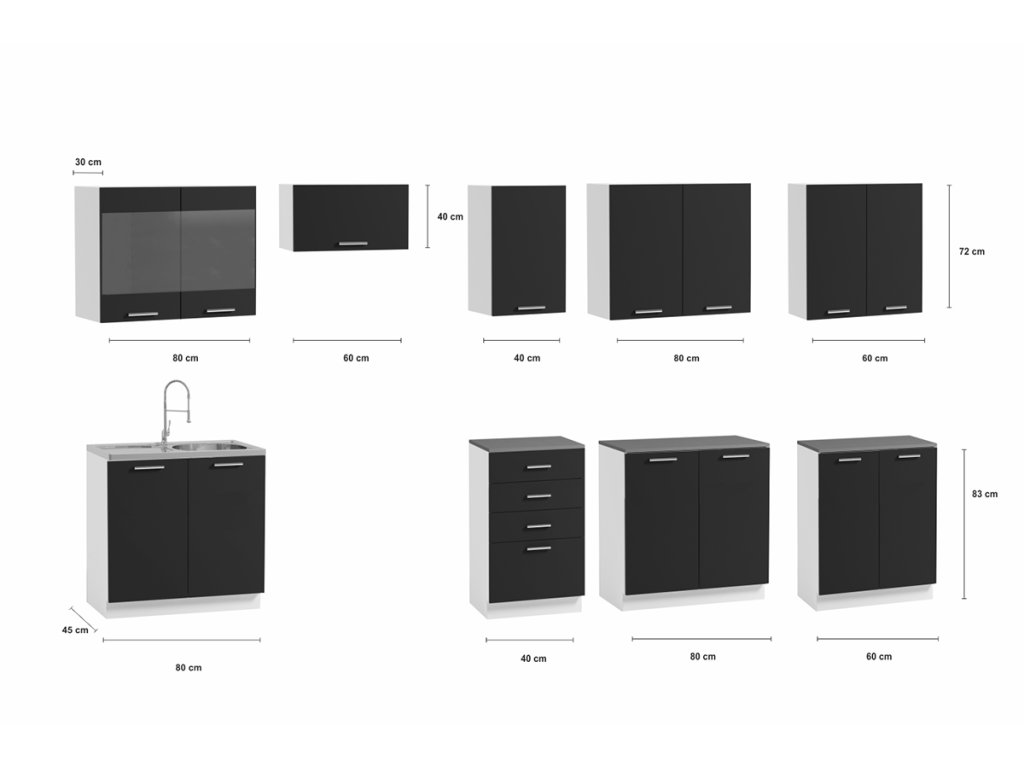 šířka: 260 cm | hloubka: 60 cm Tato moderní kuchyně kombinuje praktičnost a jednoduchý design. Skříňky se dají poskládat v libovolném pořadí a to Vám umožní si sestavit kuchyni...