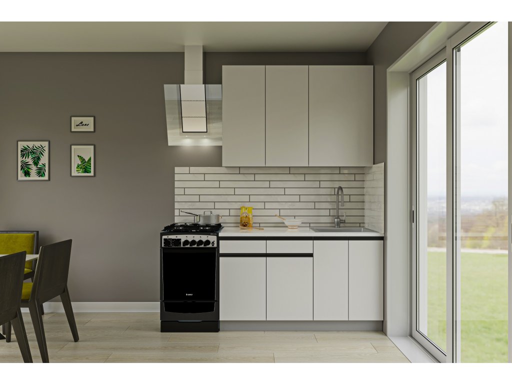 Dřez, pracovní deska, sokl nejsou v ceně. Spotřebiče nejsou součástí kuchyňské linky. Dodáváme v demontovaném stavu.