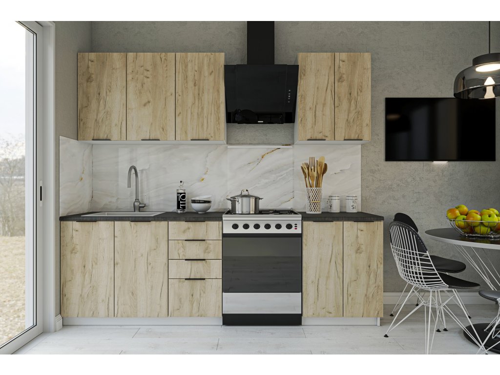 Dřez, pracovní deska, sokl nejsou v ceně. Spotřebiče nejsou součástí kuchyňské linky. Dodáváme v demontovaném stavu.