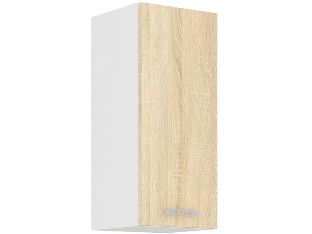 Kuchyňská skříňka Sally 30G je vyrobena z lamina tloušťky 16 mm bílé barvy a s dvířky v odstínu dub sonoma. Vyberte si z naší nabídky skříněk a vytvořte si kuchyň dle vlastích představ. Může být rohová, rovná, krátká i dlouhá. Fantazii se meze nekladou. V doplňkových fotografiích najdete pro inspiraci fotky kuchyní, které jsou z těchto skříněk sestaveny. Skříňka je dodávaná v demontu. Součástí je montážní plánek včetně všech potřebných spojovacích materiálů.