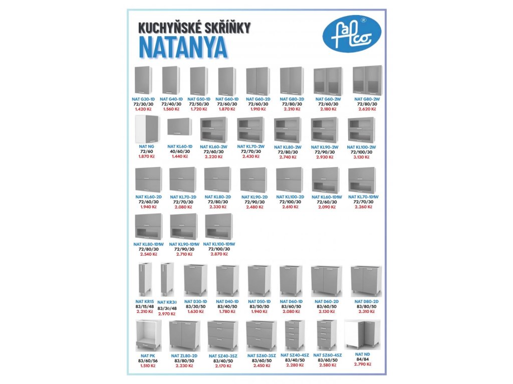Kuchyňské skříňky Natanya jsou kompatibilní ke kuchyním Biodera, Dallieance, Despacito, Eginger, Granada, Grepolis, Korry, Milenium, Nadine, Parkour, Roksana, Saleri, Simeon a Timothy.