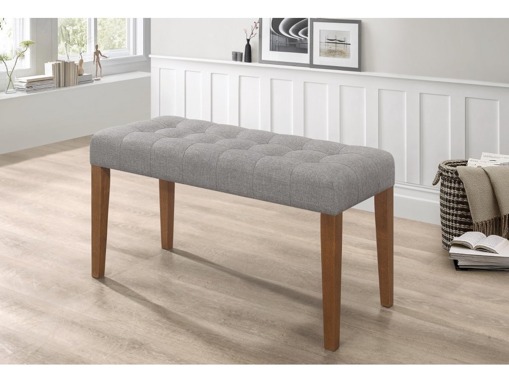 Čalouněná lavice v moderním provedení. Nábytek je vyroben z desky MDF, nožky jsou dřevěné v barvě ořech, polstrování sedáku je provedeno látkou v šedé barvě. Výplň sedáku tvoří PUR pěna.Buďte první, kdo napíše příspěvek k této položce.