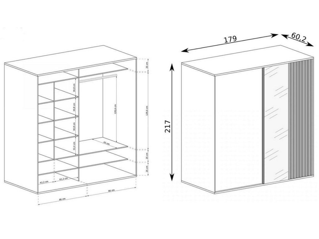 šířka: 179 cm | výška: 216 cm | hloubka: 60 cm Šatní skříň s posuvnými dveřmi s netradičním provedením detailu dvířek s lamelami. Kolekce nábytku v sobě spojuje jednoduchost,...