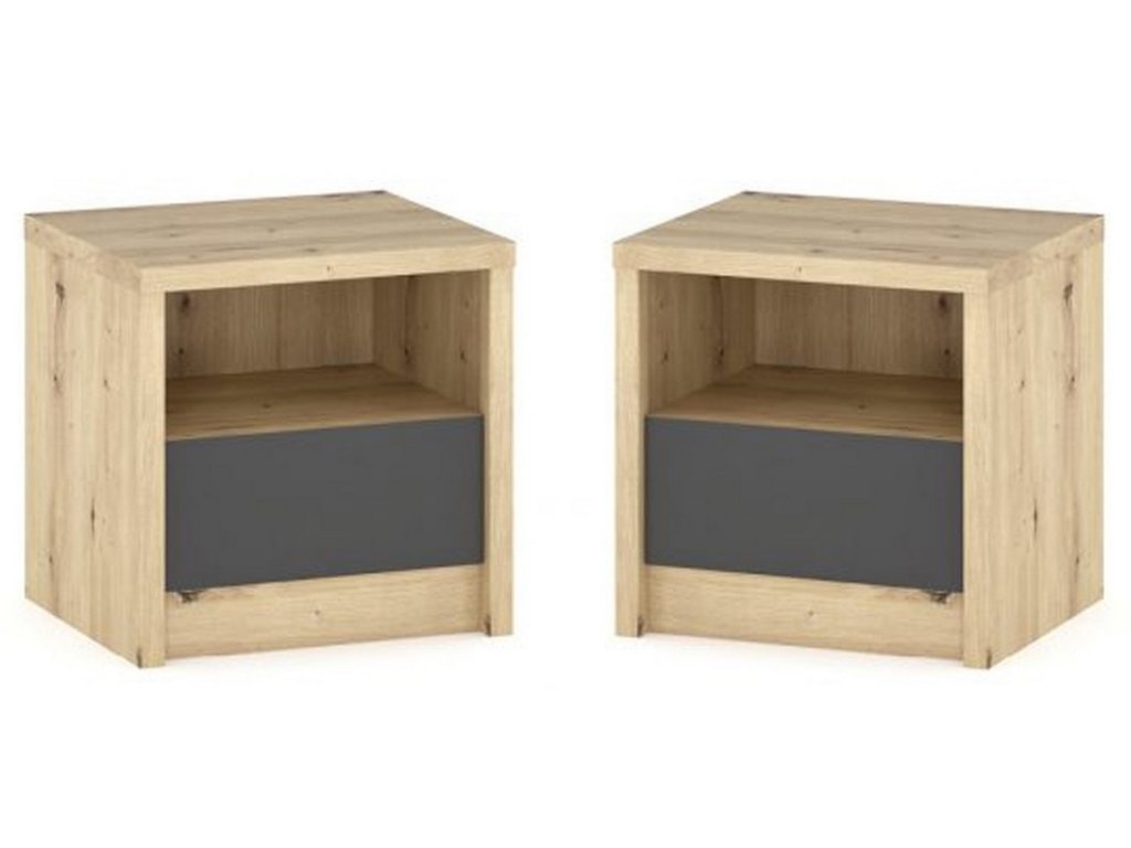 Sestava do ložnice ze sektorového nábytku. Barevné provedení dub artisan/šedý je zajímavé zachováním struktury dřeva. Bezúchytový systém podtrhuje jednoduchost, eleganci a moderní styl této řady. Nabídka komponentů této sektorové řady umožňuje sestavit si nábytek do ložnice dle vlastních představ. Sestava se skládá z (š/v/hl): postel 160 ( 184,8 x 85 x 204,3 cm), 2 kusy nočního stolku ( 46,4 x 45,6 x 39,3 cm ), šatní skříně (141 x 216,2 x 55,3 cm). Možnost dokoupení komody či zrcadla. V ceně není zahrnuta matrace ani rošt, možno dokoupit, vhodný rozměr 160 x 200 cm nebo 2 ks 80 x 200 cm. Vyrobeno z kvalitní LTD desky. Dodáváme v demontovaném stavu.Doplňkové parametry