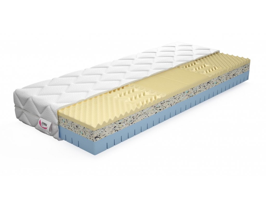 Oboustranná sendvičová matrace, vyrobená z certifikovaných materiálů nejvyšší kvality. Je navržena pro nosnost až 140 kg. Matrace má rozdílnou tuhost stran a umožňuje tak výběr měkčí nebo tvrdší strany. Výška jádra je 22 cm. Jedna strana je vyrobená ze studené pěny rozdělená do 7 anatomických zón. Střed matrace tvoří velmi pevná polyuretanová pěna. Druhá strana je vyrobena z kvalitní VISCO paměťové pěny, která má také 7 zón. Ty napomáhají k uvolnění svalstva. Potah "Snow" je prošitý antialergickým PES rounem 100 g. Potah je prodyšný a pratelný na 60 °C. Matrace je vhodná na postel o rozměrech 180 x 200 cm a pro všechny typy lamelových roštů.Doplňkové parametry
