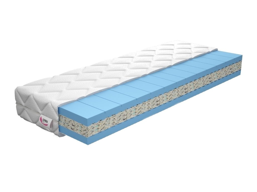 Oboustranná sendvičová matrace, vyrobená z certifikovaných materiálů nejvyšší kvality. Je navržena pro nosnost až 140 kg. Matrace má rozdílnou tuhost stran a umožňuje tak výběr měkčí nebo tvrdší strany. Výška jádra je 22 cm. Matrace je vyrobena ze tří vrstev. První vrstva je vyrobena ze studené pěny, která je rozdělena na 7 anatomických zón. Střed matrace tvoří kvalitní RE pěna. Třetí vrstva je rovněž perforovaná a vyrobená ze studené pěny jako vrstva první. Potah "Snow" je prošitý antialergickým PES rounem 100 g. Potah je prodyšný a pratelný na 60 °C. Matrace je vhodná na postel o rozměrech 180 x 200 cm a pro všechny typy lamelových roštů.Doplňkové parametry