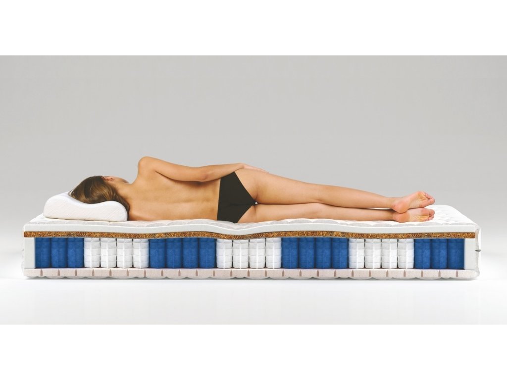 Pružinová matrace 80x200 cm v pratelném snímatelném potahu. Jádro matrace je charakteristické hustě uspořádanými taštičkovými pružinami v množství 262 ks/m2 a 7 zónami tvrdosti, které zajišťují dokonalou oporu těla a komfort odpočinku. Za zmínku stojí funkce taštičkových pružin, které pracují odděleně a reagují jen v místě tlaku. Pokud si tedy na matraci lehnete, dojde ke stlačení pouze těch pružin, na které se vyvíjí tlak. Matrace je z jedné strany potažena 1 cm silnou kokosovou deskou a z obou stran PUR pěnou T25 o síle 2 cm. Kokos se v matracích používá ke zpevnění, zvýšení nosnosti a odolnosti, zároveň je antibakteriální a antialergický. Pomáhá odvádět vlhkost z matrace a udržuje uvnitř suché prostředí. Matrace je hypoalergenní a použití bavlny v potahu matrace podporuje cirkulaci vzduchu a poskytuje dobrou tepelnou izolaci. Je odolná vůči různým druhům tlaku, deformaci a promáčknutí a poskytuje dobrou ventilaci, což ocení lidé s nadměrným pocením. Matrace má označení tvrdosti H3/H5 - středně tvrdá/extra tvrdá. Výška matrace je +/- 19 cm. Barva pěn se může lišit od vyobrazení.Doplňkové parametry