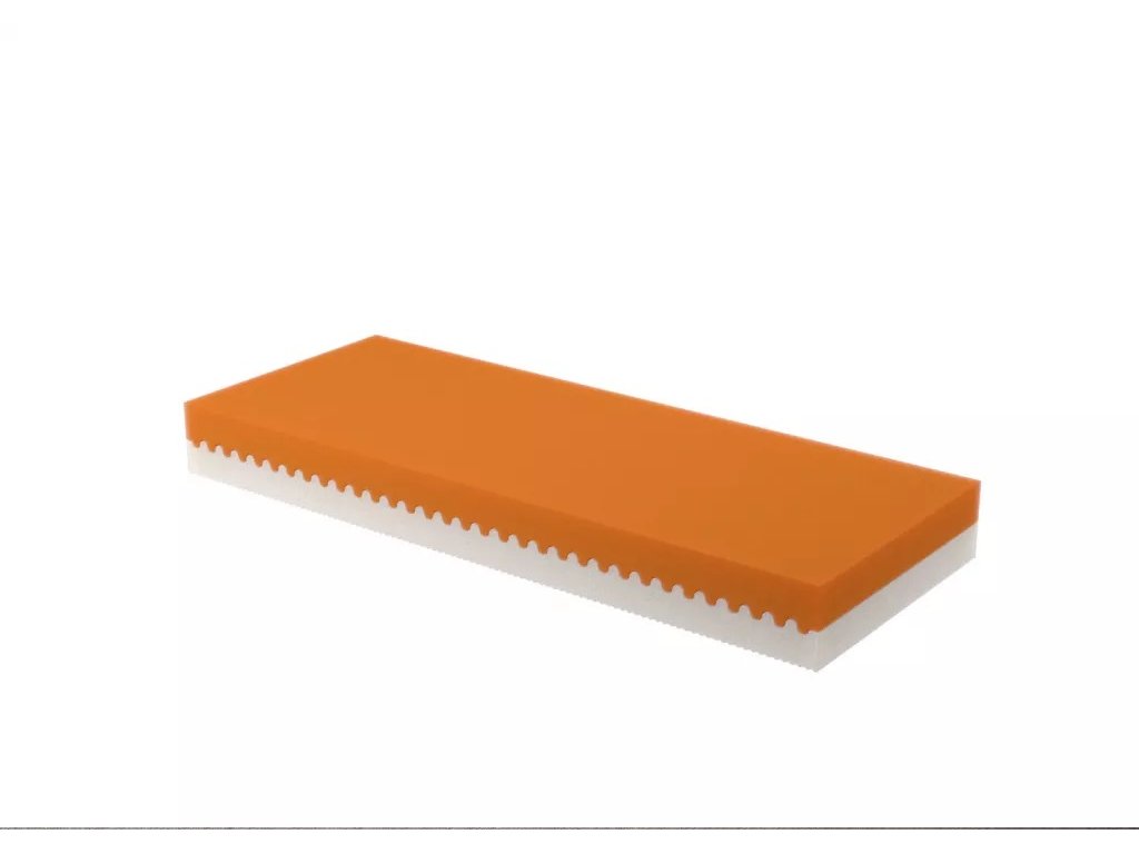 Matrace z kvalitních pěn je díky speciálnímu zámkovému systému vyrobena bez použití lepidel. Jádro je složeno z desek z polyuretanových pěn (tzv. PUR pěn) o nižší (bílo-žlutá pěna) a vyšší (růžovo - oranžová pěna) tuhosti, což umožňuje výběr měkčí a tvrdší strany matrace. Komfort lehací plochy u měkčí strany je zvýšen tvarovým prořezem, který zajišťuje lepší odvětrávání povrchu.Matrace je opatřena snímatelným potahem na zip, který je pratelný na 30 st. Velká výška matracového jádra zajišťuje zvýšený lehací komfort a velmi dobrou podporu těla uživatele.