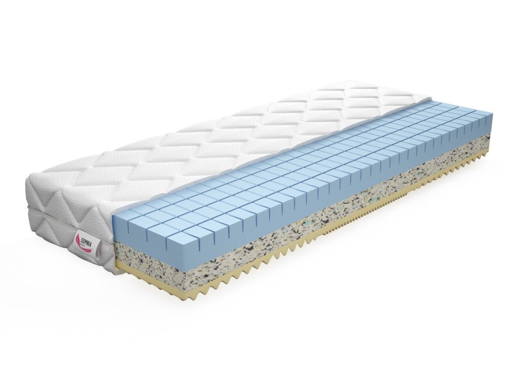 Oboustranná sendvičová matrace, vyrobená z certifikovaných materiálů nejvyšší kvality. Je navržena pro nosnost až 140 kg. Matrace má rozdílnou tuhost stran a umožňuje tak výběr měkčí nebo tvrdší strany. Výška jádra je 22 cm. Jedna strana je vyrobená ze studené pěny rozdělená do 7 anatomických zón. Střed matrace tvoří velmi pevná polyuretanová pěna. Druhá strana je vyrobena z kvalitní VISCO paměťové pěny, která má také 7 zón. Ty napomáhají k uvolnění svalstva. Potah "Snow" je prošitý antialergickým PES rounem 100 g. Potah je prodyšný a pratelný na 60 °C. Matrace je vhodná na postel o rozměrech 80 x 200 cm a pro všechny typy lamelových roštů.Doplňkové parametry