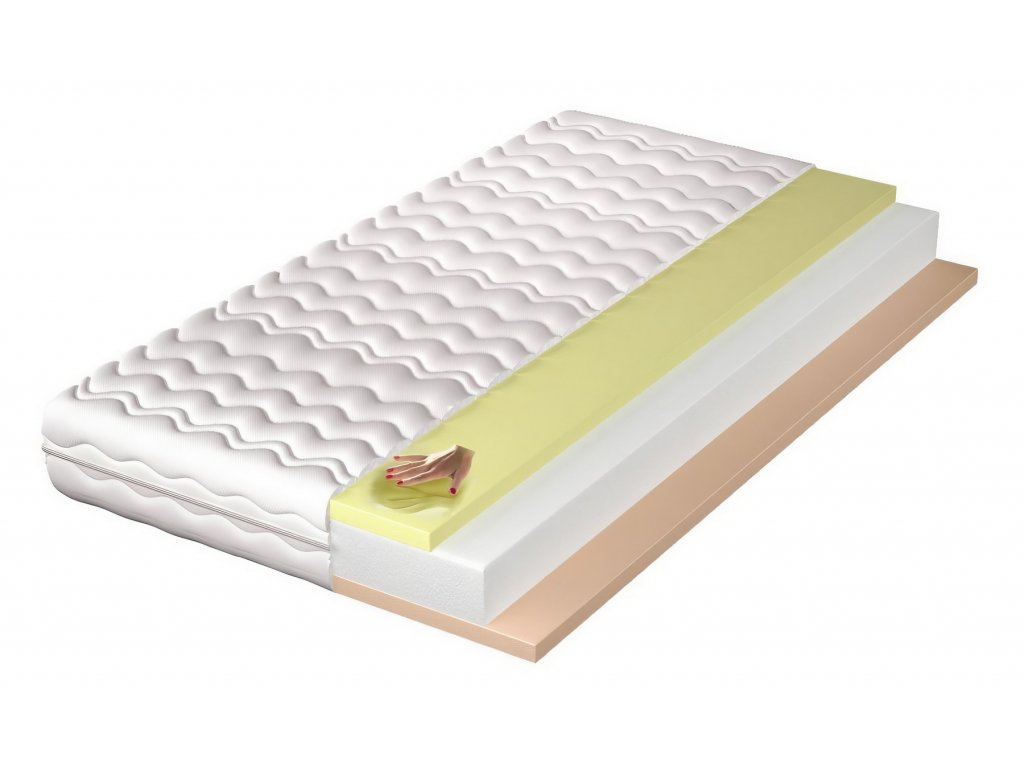 Pěnová matrace 90x200 cm v pratelném snímatelném potahu. Skládá se ze tří vrstev - střed matrace tvoří PUR pěna T25, která je z jedné strany potažena 3 cm silnou termoelastickou pěnou a z druhé strany 3 cm silnou vysoce elastickou pěnou, což umožňuje výběr užitkové strany vzhledem k rozdílům ve vlastnostech pěn. Termoelastická pěna (visco) při kontaktu s tělesným teplem měkne, nevytváří protitlak a pružně se přizpůsobí anatomii lidského těla. Díky tzv. efektu pomalého vracení (líná pěna) rovnoměrně rozkládá tlak matrace na lidské tělo, což má pozitivní vliv na krevní oběh, zlepšuje kvalitu spánku a zmírňuje bolesti zad. Druhým materiálem je pěna s vysokou elasticitou, která je podobná latexu, poskytuje dobrou oporu tělu, zvyšuje pohodlí, elasticitu a flexibilitu. Matrace je hypoalergenní a použití bavlny v potahu matrace podporuje cirkulaci vzduchu a poskytuje dobrou tepelnou izolaci. Je odolná vůči různým druhům tlaku, deformaci a promáčknutí a poskytuje dobrou ventilaci, což ocení lidé s nadměrným pocením. Matrace má označení tvrdosti H3 - středně tvrdá. Výška matrace je +/- 18 cm. Barva pěn se může lišit od vyobrazení.Doplňkové parametry