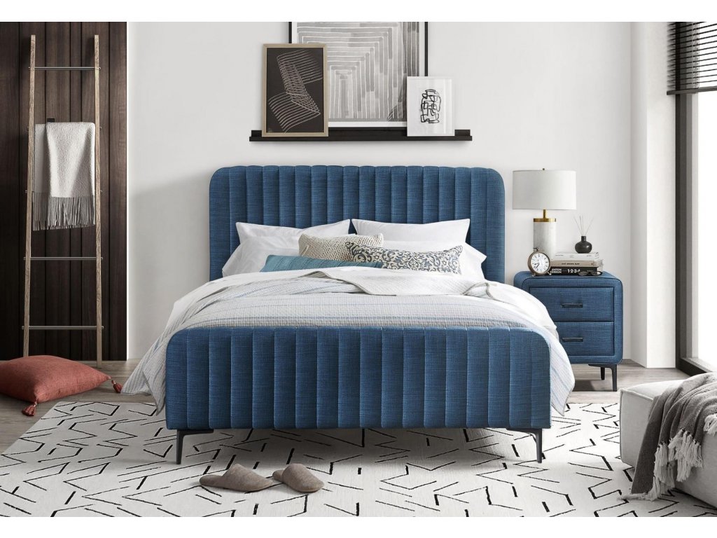 Čalouněný noční stolek se dvěma zásuvkami v barevném provedení látky modrá. Dodáváme v demontovaném stavu.Doplňkové parametry