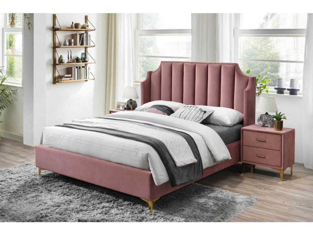 Čalouněný noční stolek originálního vzhledu. Konstrukce je z kvalitního přírodního dřeva potažena látkou aksamit ve starorůžové barvě. Úchyty a nožky stolku jsou ve zlaté barvě.Doplňkové parametry