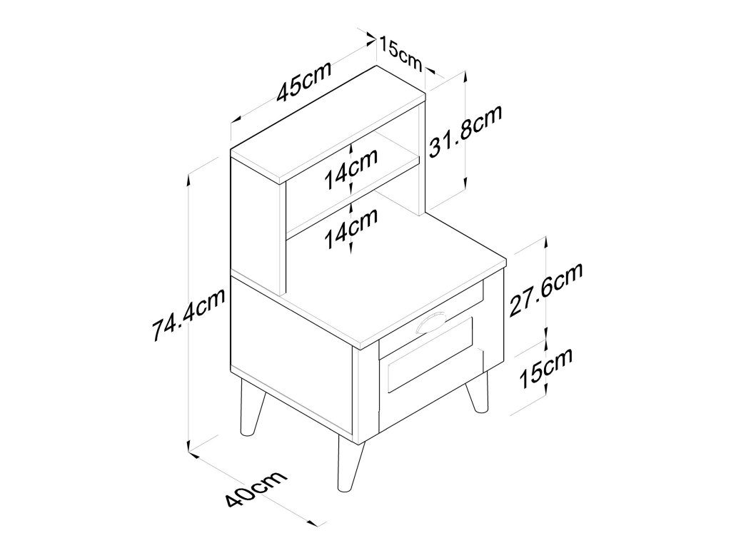 - Rozměry: 74,4 x 45 x 40 cm – kompaktní a praktický design.