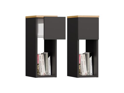 Noční stolek sada 2 ks z ložnicové řady. Barevné provedení dub artisan/šedý je zajímavé zachováním struktury dřeva. Bezúchytový systém podtrhuje jednoduchost, eleganci a moderní styl této řady. Nabídka komponentů této sektorové řady umožňuje sestavit si nábytek do ložnice dle vlastních představ. Dodáváme v demontovaném stavu.Doplňkové parametry