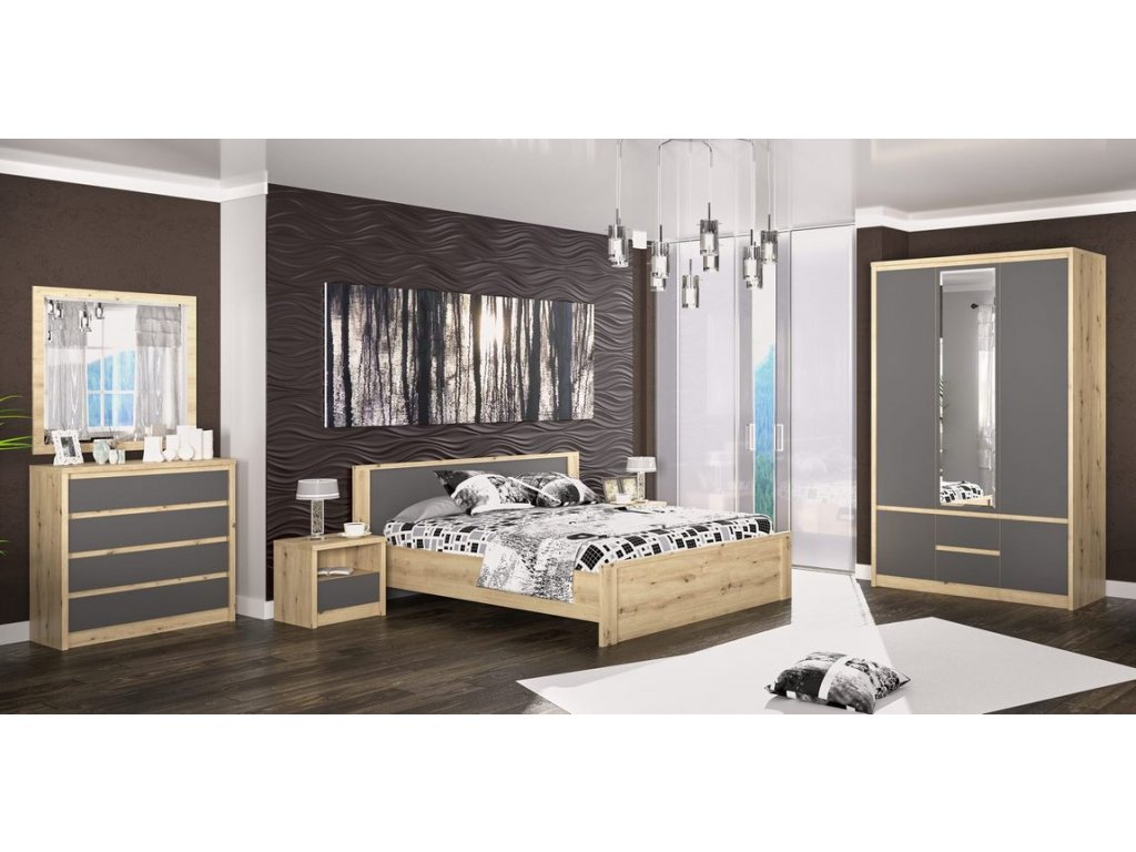 Sestava do ložnice ze sektorového nábytku. Barevné provedení dub artisan/šedý je zajímavé zachováním struktury dřeva. Bezúchytový systém podtrhuje jednoduchost, eleganci a...