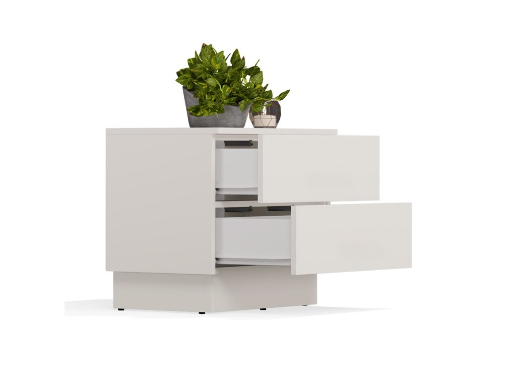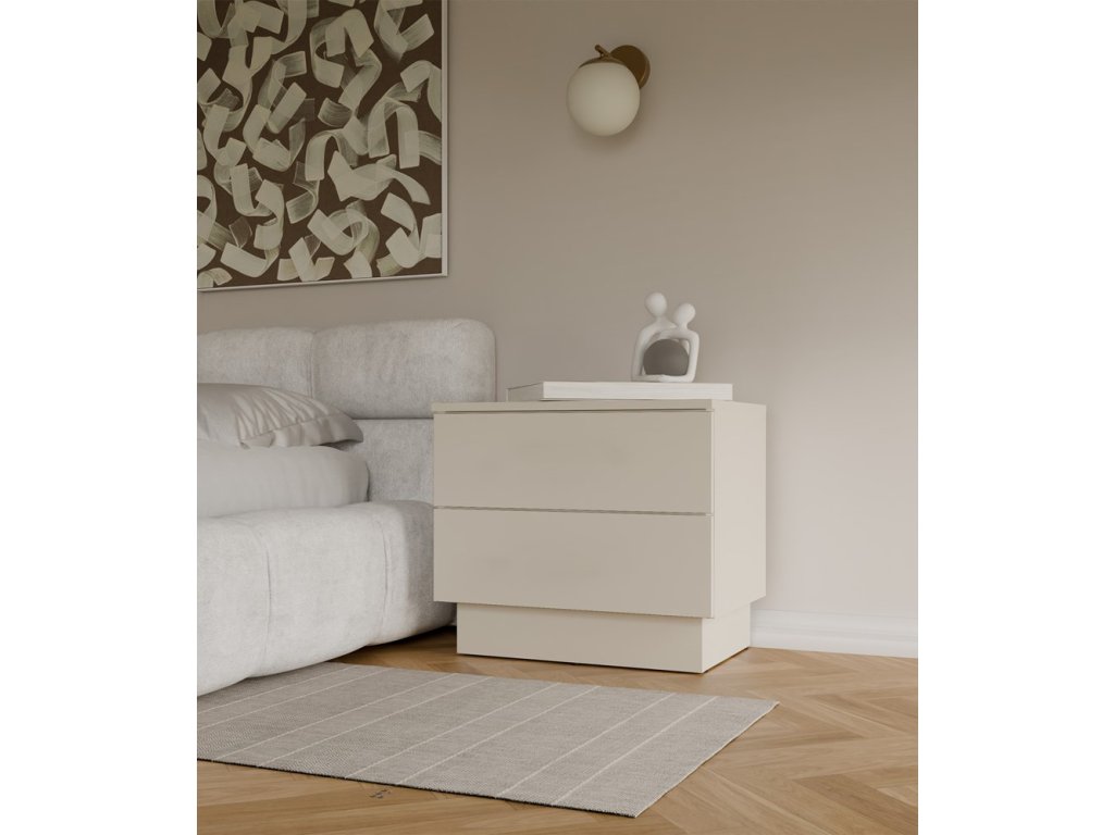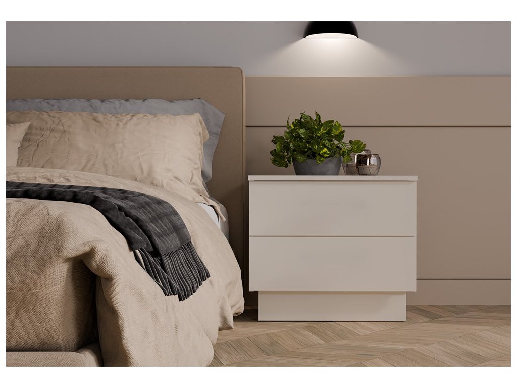Dvě prostorné zásuvky umožňují uložit knihy, brýle, nabíječky či kosmetiku a zajistí, že budete mít všechny drobnosti vždy po ruce. Díky systému TIP-ON se zásuvky otevírají jemným zatlačením, takže stolek působí čistě a elegantně. Univerzální tvar a kompaktní rozměry z něj dělají nábytek vhodný i do menších interiérů.