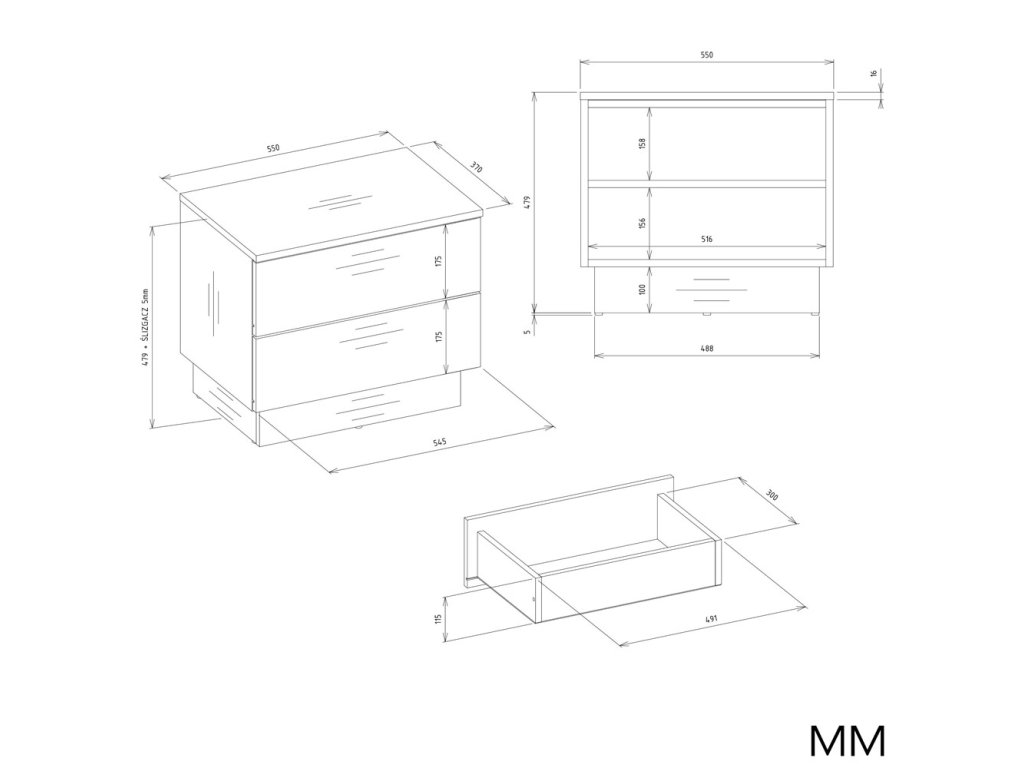 šířka: 45 cm | výška: 51,5 cm | hloubka: 45 cm Noční stolek se dvěma zásuvkami, korpus je vyroben z LTD desky odolné vůči poškrábání v barvě antracit, čela zásuvek jsou vyrobeny...