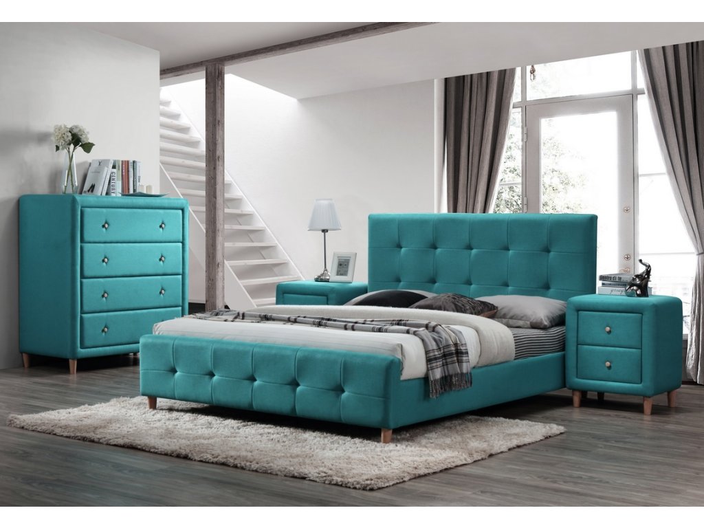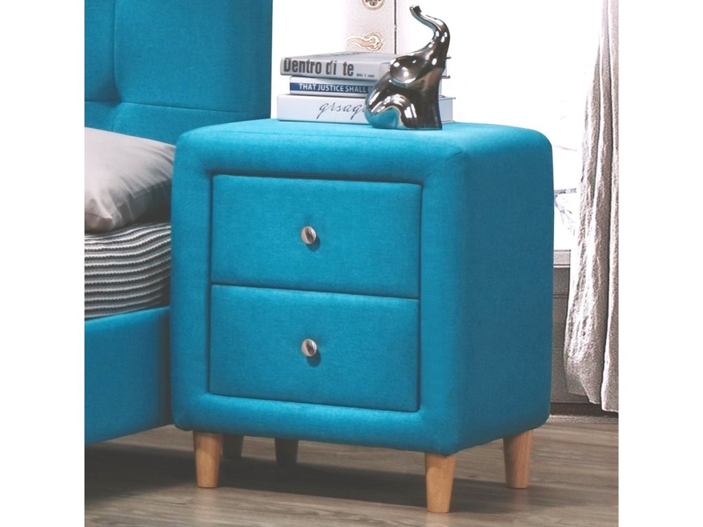 Noční stolek stylového rázu. Je čalouněný kvalitní potahovou látkou v nádherné barvě Tiffany blue tyrkys. Stolek má dvě zásuvky a stojí na dřevěných nožkách. DOPRODEJ!Doplňkové parametry