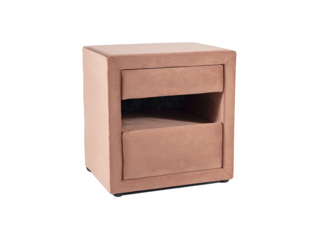 šířka: 50 cm | výška: 42 cm | hloubka: 35 cm Elegantní čalouněný noční stolek se dvěma zásuvkami. Konstrukce je potažena látkou velvet (Bluvel 52) ve starorůžové barvě. Nožky...
