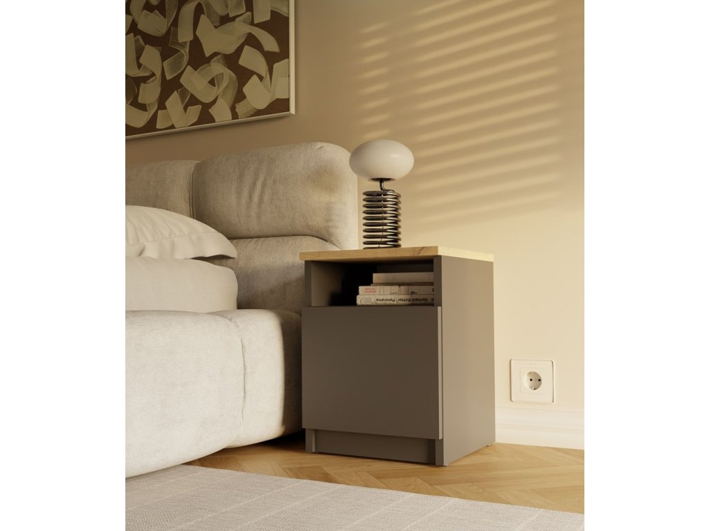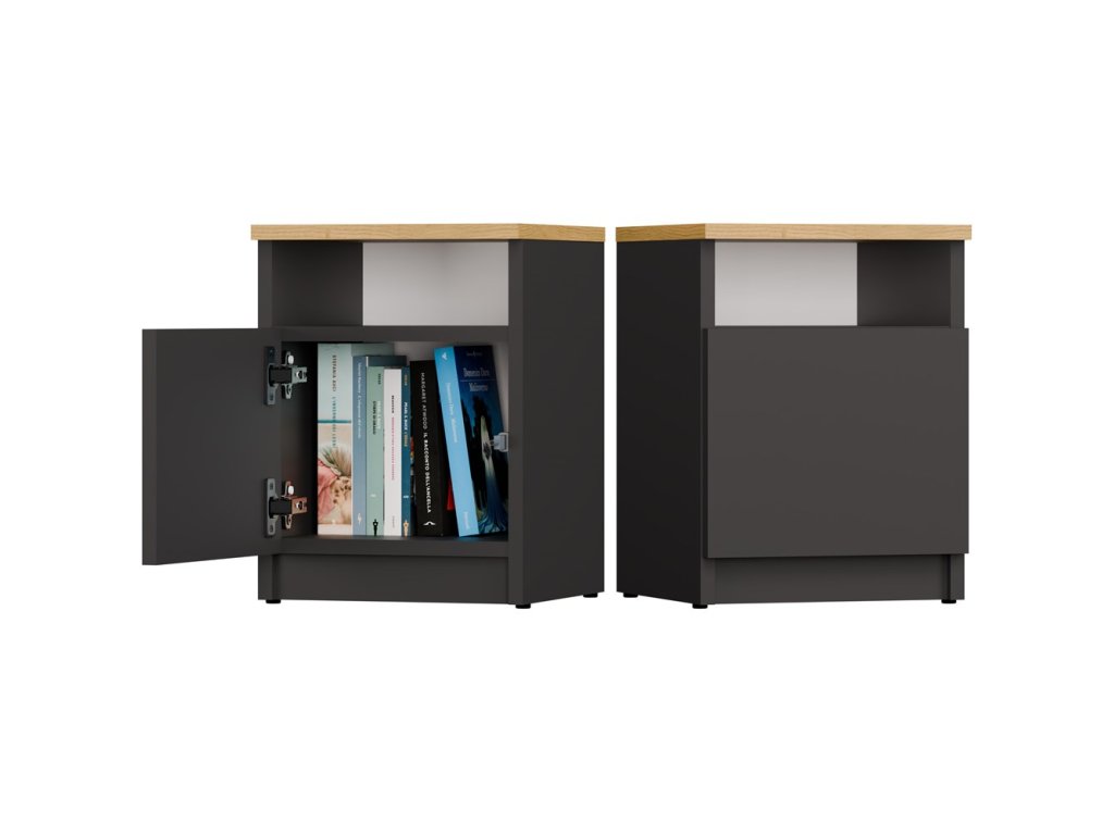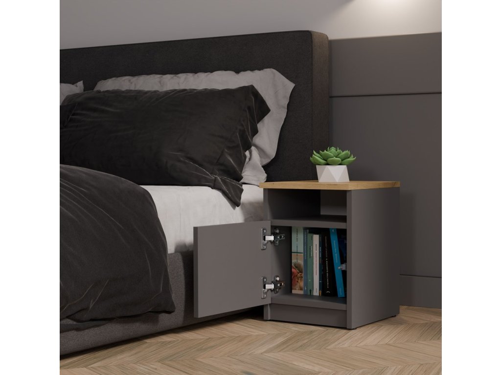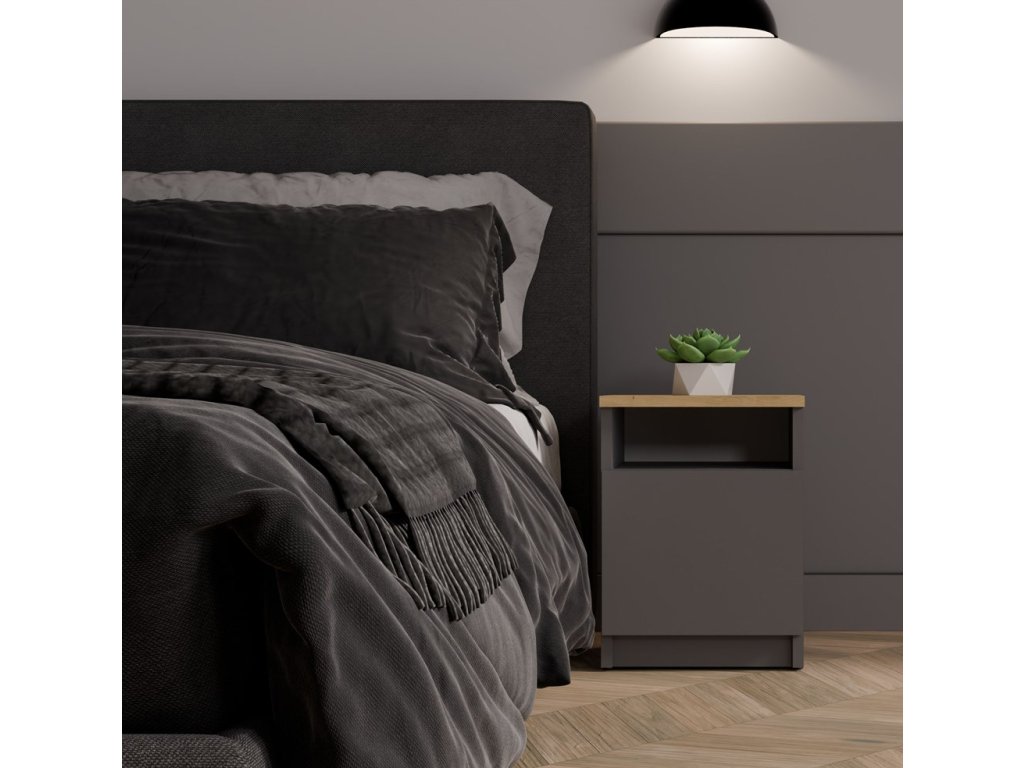 Noční stolek GALAX 30 1D antracit/dub artisan