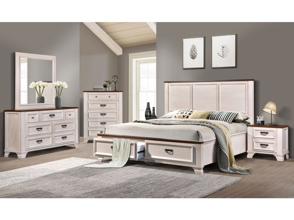 Klasický luxusní noční stolek z masivního dřeva. Konstrukce je z kvalitního přírodního dřeva v barvě mrazivě bílé v kombinaci s americkým ořechem. Čela šuplíků jsou z MDF s masivní dýhou (Hevea). Obsahuje 2 praktické zásuvky. Dodáváme v demontovaném stavu. DOPRODEJ!Doplňkové parametry