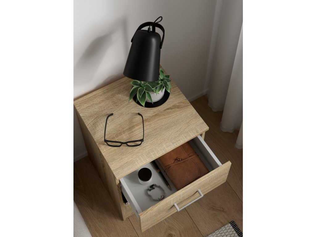 Moderní noční stolek Sid v nadčasovém designu bez námahy doplní jakýkoliv interiér. Série Sid vyrobená ze snadno udržovatelného lamina obsahuje také komody a šatní skříně v různých velikostech.