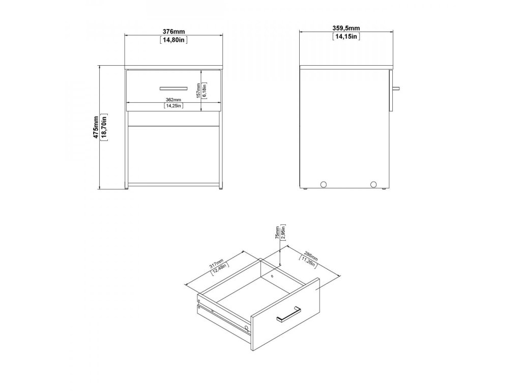 šířka: 45 cm | výška: 46,5 cm | hloubka: 43 cm Noční stolek se zásuvkou a regálkem je vyroben z LTD desky odolné vůči poškrábání v barvě bílá strukturální. Dodáváme v...