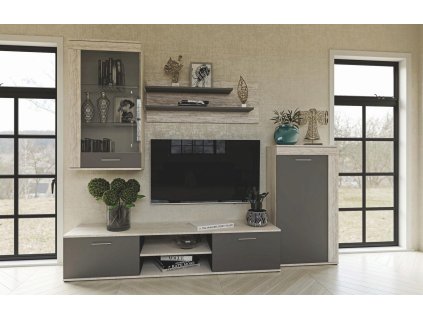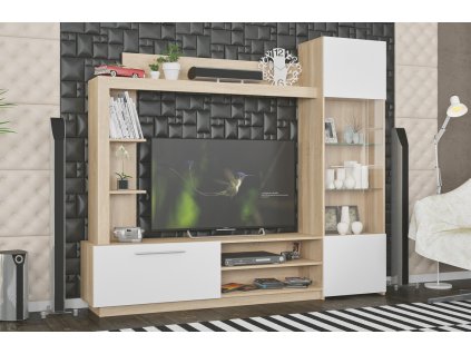 Obývací sestava v moderním provedení dekoru přírodního dřeva. Nábytek je vyroben z kvalitní LTD desky v barevné kombinaci dub artisan/bílá. Sestava se skládá z těchto položek (Š...