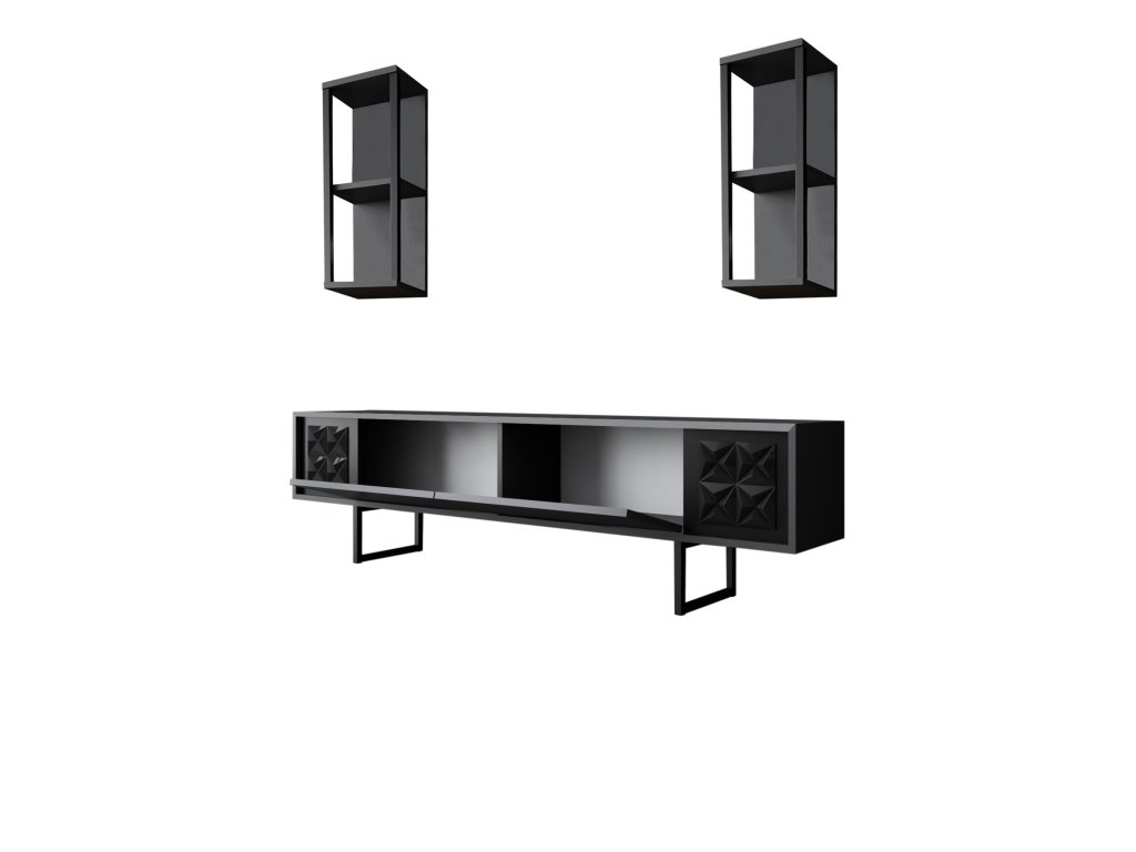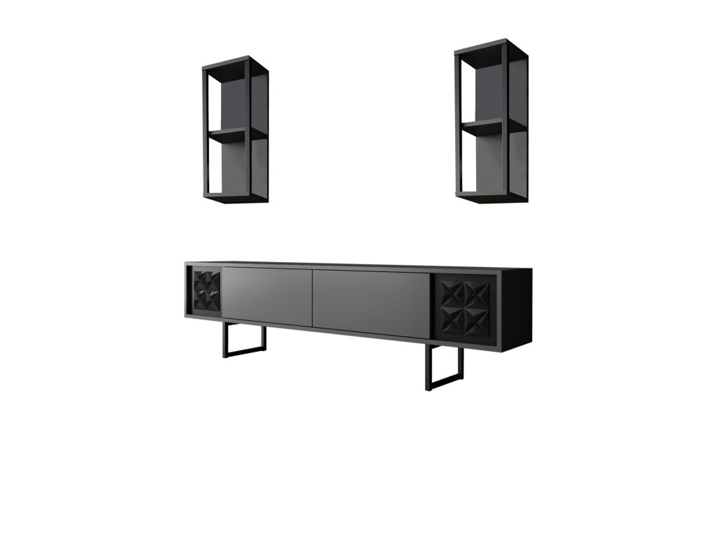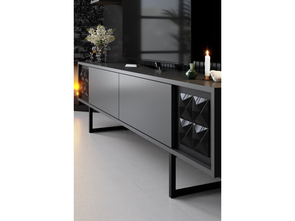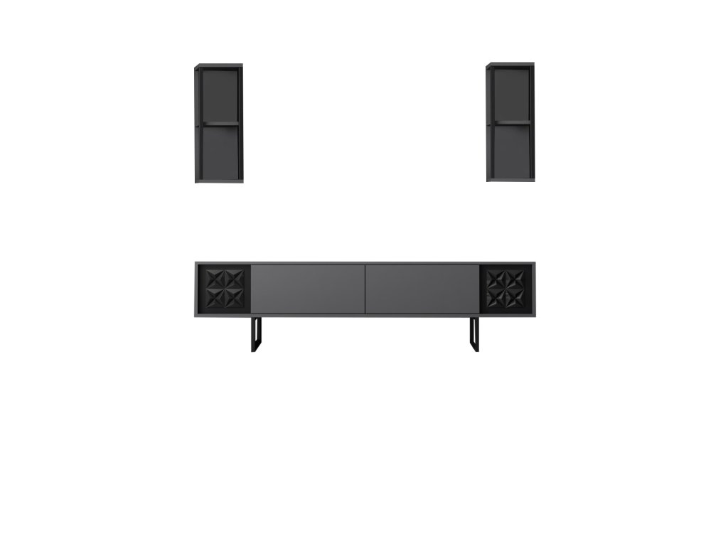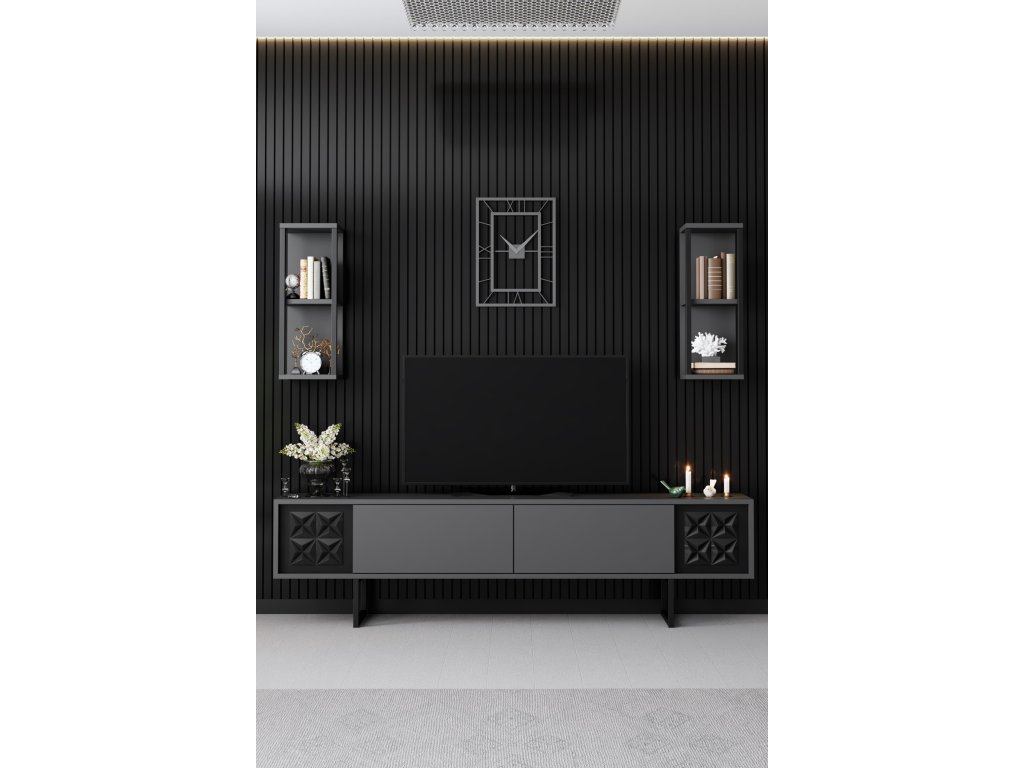 Tato televizní skříňka s elegantním designem je ztělesněním moderní elegance. Kombinace antracitové a černé barvy dodává každému prostoru nádech sofistikovanosti a dělá z ní perfektní doplněk vašeho domova.